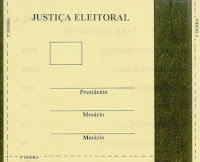 Mas que estória é essa de pivete, seu pivete? Provavelmente você ainda era um projeto de espermatozóide quando eu votei pela primeira vez. Só pra você ter idéia, fui inclusive escalado como primeiro mesário numa eleição quando nem tinha urna eletrônica ainda… Eu tinha que rubricar TODAS as cédulas (iguais e essa ai da foto) da seção!!! E ainda teve segundo turno, que merda…