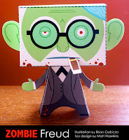 É “de grátis”!!! Voce só vai gastar uma folha de papel, um pouco de tinta de impressora e cola ou fita adesiva. Crica aqui e imprima, pô!!! E como o boneco é verde, de quebra voce pode fazer tambem a versão Freud Zumbi Skrull, basta cortar pontas nas orelhas ao invés de deixar elas arredondadas, hehehe