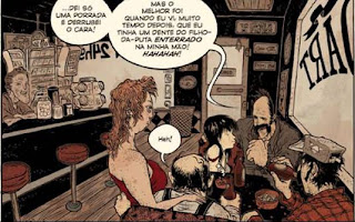 De cara a HQ me deixou interessado pelo estilo visual e pelas referências pop citadas descompromissadamente. É assim que a estória flui: ágil, rápida, aparentemente sem grandes pretensões senão servir de apoio para a arte FODÁSTICA de Grampá, através de situações e seqüências impactantes.