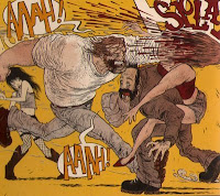 Começa com o motorista grandalhão Rufo e o magrelo Sangrecco num caminhão, indo fazer a entrega de uma carga que é misteriosa até mesmo para Rufo. Após uma parada num boteco de beira de estrada rola uma treta entre Rufo e esse fanfarrão marrento da imagem abaixo e isso é o passaporte do leitor para a pancadaria incessante que vem a seguir.