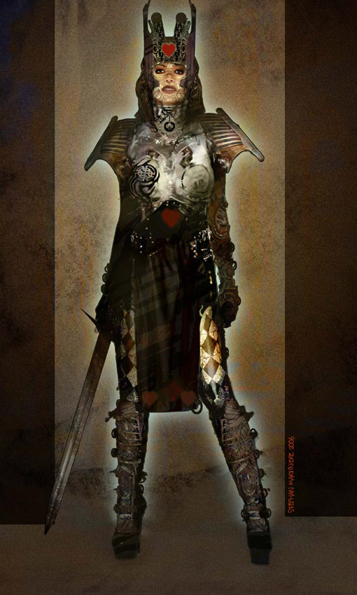 Não sei se vocês estão sabendo,mas Charles Roven(TDK) está indo na onde do Tim Burton e também vai adaptar mais uma historia do País das Maravilhas de Alice pros cinemas,mas digamos que essa versão é muito mais…hardcore.The Looking Glass War é baseado em um livro de Frank Beddor,onde conta a historia de Alyss Heart, herdeiro do trono Wonderland, é forçada a fugir, quando sua venenosa tia Redd mata seus pais, o Rei e a Rainha de Copas. Ela escapa através do Poço das Lagrimas, indo parar na Londres vitoriana, mas ela acha que não tem nenhum caminho de volta para casa. Adotada pelos Liddells, que a batizam de Alice Liddell e desaprovam suas histórias selvagens sobre Wonderland, Alyss implora para Charles Dodgson para contar sua história real. Mesmo ele escrevendo o livro “Alice’s Adventures in Wonderland”, ela sabe que ninguém acredita nela de fato. Com o passar dos anos, Alice vai reprimindo suas memórias. Em seguida, o guarda-costas real Hatter Madigan, fica determinado a começar uma guerra para o trono de Wonderland.O concept art de Alyss você pode ver abaixo,mas o dos soldados estão todos no /Film.