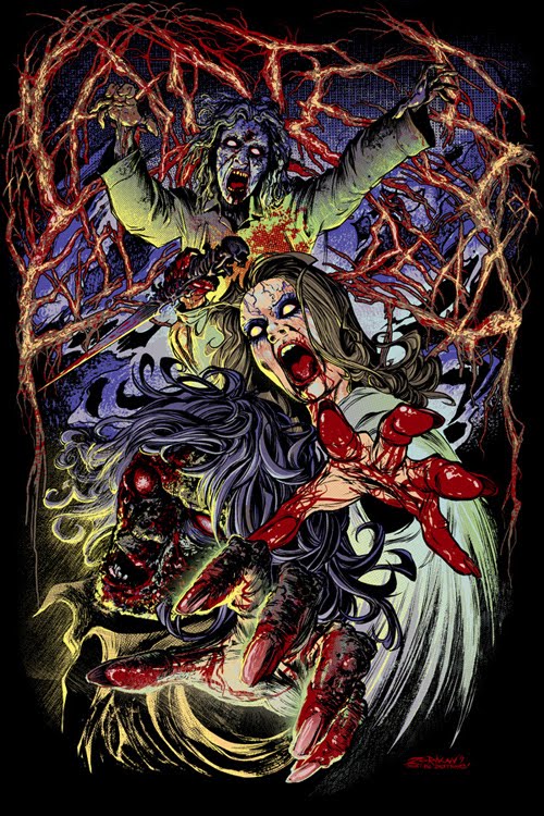 Foto da camiseta das damas motas-vivas de Evil Dead!Arte espetacular, camiseta foda, mas pena que custe 50 doletas