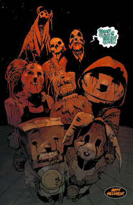 Com uma cronologia meio Tarantino way, quatro contos de terror ao estilo Contos da Crypta e Creepyshow são mostrados. As historias não são puro de terror psicológico or Slasher, tem uma levada mais de quadrinhos de terror clássicos, como no auge da EC Comics, por exemplo. São mostradas situações quando se desafia o sobrenatural ou até mesmo o próprio espírito do Halloween, personificado no caso na figura estranha, mas desde já clássica, de Sam, um ser estranho com um saco de batatas na cabeça ( não, não é o Cillian Murphy ). Vou tentar (conseguir é outros 500) contar as historias e soltar o mínimo de spoilers possível.