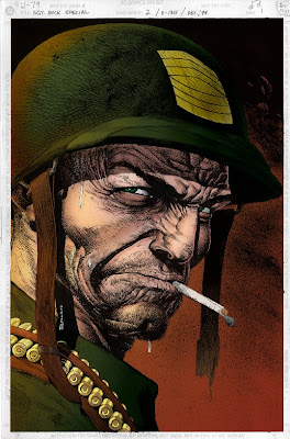 Outra coisa, Sgt Rock é um personagem de época.Assim como Watchmen,não podem simplesmente botar o Dr Manhatthan destruindo terroristas iraquianos ou algo do tipo (como Paul Grengrass quase fez) porque isso vai contra todo o conceito original.V de Vingança tinha essa possibilidade de adaptação, de mudança de data, porque de certa forma o assunto abordado ainda acontece hoje em dia.Mas tirar da Companhia Moleza a possibilidade de chutar bundas nazistas é triste mas desejo que essa idéia de jerico seja jogada fora e que façam algo jus ao excelente personagem que é.