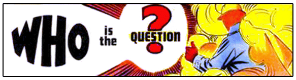 Na nova Terra da DC, o Questão fez sua primeira aparição em 1986, co-estrelando algumas aventuras do seu velho “companheiro de título” da Charlton: O Besouro Azul. No início do ano seguinte o Questão seria reformulado por Denny O´Neil (assunto pro próximo post), mas antes disso falemos de outro ilustre “herói sem rosto” que estreava também no fim de 86…
