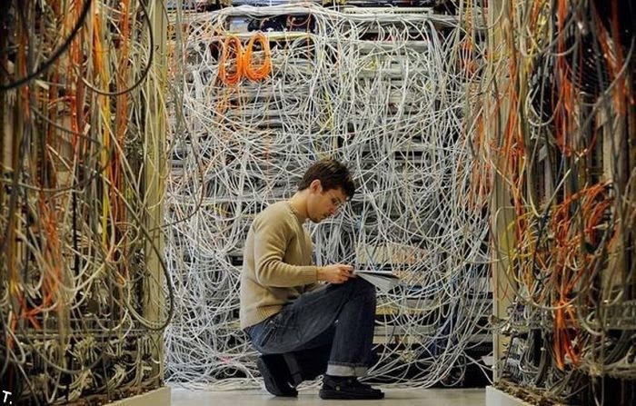 Um dos estagiários em nossa central tentando entenderporque as duas últimas matérias não foram ao ar.