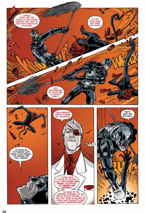 Nesta edição da HQM editora ainda temos, nas últimas histórias, o início da construção de uma mitologia para os personagens, com alguns vislumbres mais abrangentes sobre o mundo de Necronauta e outros personagens interessantes (a participação de Nikola Tesla numa delas fez de mim um fã do autor, admito). As únicas coisas que eu não gostei foram a inclusão de um mito da igreja católica como vilão de uma das histórias (que inclusive foi publicada nos EUA numa antologia da Image Comics chamada Popgun, talvez aí esteja o motivo, a necessidade de se colocar um “vilão” para Necronauta enfrentar numa hq para o público americano), pois diminiui um pouco a força da idéia não declarada de que cada um vai para o lugar que acredita, por isso a hq perdeu pontos comigo neste aspecto. Ah, e o uniforme que, apesar de ser muito bacana, não deixa de remeter aos heróis americanos (mas tai algo que dá pra entender, considerando as prováveis inspirações do personagem), o que era desnecessário.