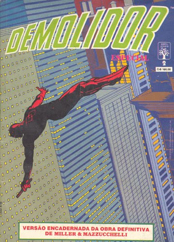 Não falei de Karen Page (a ex namorada responsável pela descoberta do Rei), Foggy Nelson, Ben Urich (outro grande herói da trama), de Maggie, do combate final contra o Bazuca (uma versão distorcida do Capitâo América), do próprio Capitão e até do infame Tucão, todos perfeitos em suas presenças, mas realmente não há mais o que dizer: TEM QUE LER. Infelizmente apenas edições antigas dessa saga estão disponíveis por aqui. Ela saiu originalmente na antiga Superaventuras Marvel, da Editora Abril e depois foi republicada pelo menos mais 2 vezes pela mesma Abril. A que eu guardo é a da capa ao lado, um encadernado em formatinho de Junho de 1990 (Demolidor Especial 2, custou Cem Cruzeiros, rs…). Já passou da hora da Panini, que felizmente lancou toda a fase anterior do Miller no Demolidor, republicar isso por aqui.