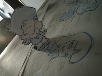 Uma vez que eu já estou com a idéia da tira pronta na minha cabeça, eu faço apenas um rascunho antes de desenhar cada tira. Esse rascunho me ajuda a visualizar a tira antes de desenhar, eu vejo de quantos quadrinhos eu vou precisar e o que acontece em cada um deles.