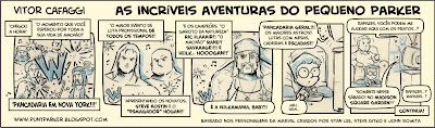 Tô falando do Vitor Cafaggi, o criador de Puny Parker (ou o Pequeno Parker), o personagem que é uma homenagem ao herói da Marvel, mostra em seu trabalho um aspecto bem diferenciado no que se refere à tiras.