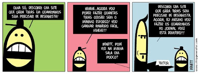 Mas hoje anda difícil eu fazer tiras novas e ispiradas, por uma questão de falta de tempo, mesmo. Talvez falta de interesse, realmente. Acho que estou perdendo um pouco o tesão por isso.