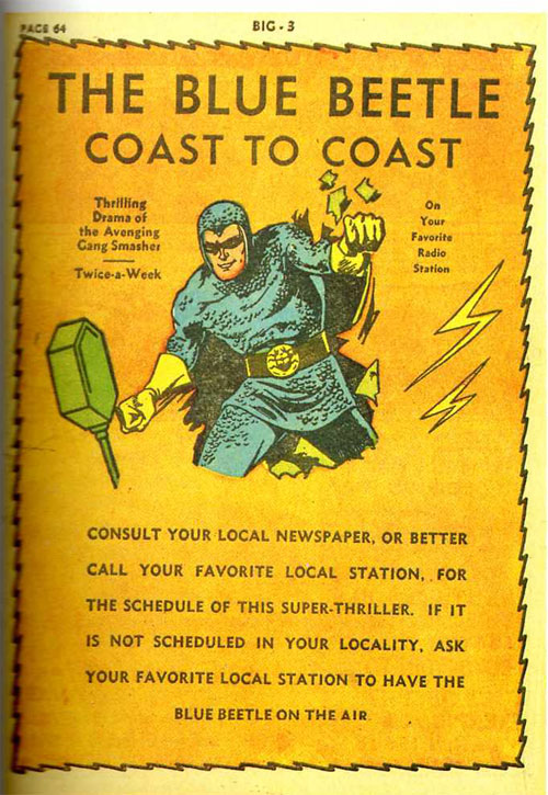 CURIOSIDADES:– O Besouro Azul original teve um sidekick, chamado Sparky, que curiosamente começou usando uma roupa similar a seu mentor mas, depois de um tempo, a abandonou e passou a atuar usando trajes comuns.