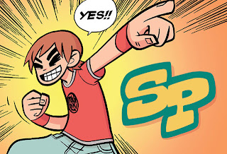 Três passagens interessantes, a camisa de Scott com o símbolo do 4 ¹/² do Quarteto Fantástico, a camisa que ele sempre usa com um coração formado pelas letras SP podiam até signicar as iniciais de seu nome, mas é o logo da banda Smashing Pumpkins e na festa o cara que conhece todo mundo, Comeau, cita que “A HQ é bem melhor que o filme”! =)