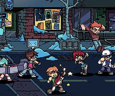 Não é a toa que Scott Pilgrim acabou virando também um jogo de videogame, no melhor estilo arcade, tipo a mesma plataforma de jogos como Double Dragon e similares, cheio de cores brilhantes, sons característicos e fases com chefões! Tem até o desafio de baixos está lá, assim como também está presente nas mídias que o antecederam.
