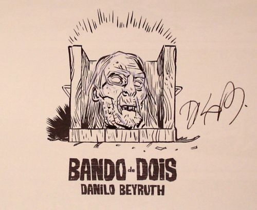 Fui então na Livraria da Travessa, encontrar o Danilo Beyruth (que já gravou 2 podcasts conosco e tal e vc já ta cansado de ler isso aqui no blog, rs..) para cobrar meus prometidos autógrafos e desenhos nas minhas cópias de Necronauta e Bando de Dois, e trocar uma idéia.