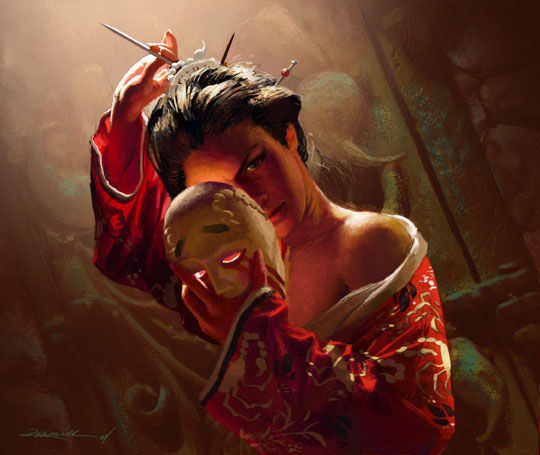 De repente o álcool e exaustão de Takuro se extinguiram num acesso de adrenalina. Ele sentiu seus irmãos tensos ao seu lado. Todos eles foram ronins por tempo o bastante para conhecer os perigos da vida que levavam. Samurais eram guerreiros, soldados cuja lâmina servia a vontade de seus daimios. Um ronin, um samurai sem mestre, era uma força selvagem, incontrolada no Império. Por não poderem oferecer alianças a nenhum homem, eles não têm proteção além da própria astúcia.