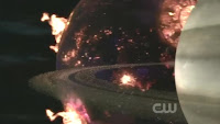 Como era de se esperar, diversos aspectos deste final ganham o selo “é melhor não pensar muito nisso” de roteirismo, como o retorno de Johnatan Kent (não especificado se como espírito, como alguém do passado, como um “espírito virtual” basicamente como Jor-El, enfim…), a ausência dos personagens da Liga da Justiça (no penúltimo episódio vimos que a Legião do Mal havia recebido a missão de atacar os heróis – só que nem os heróis nem os vilões aparecem no episódio, os vilões sequer são citados!), umas cenas forçadas entre Clark e a mãe dele (embora uma das cenas em particular tenha sido bem legal) e, claro, o fato de um PLANETA ENORME estar se dirigindo para o nosso sistema solar e os efeitos serem simplesmente pequenos tremores de terra globais. Parece que as leis da física em Smallville são bem diferentes.