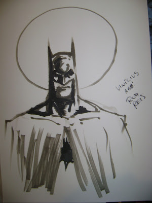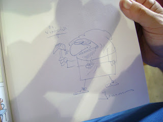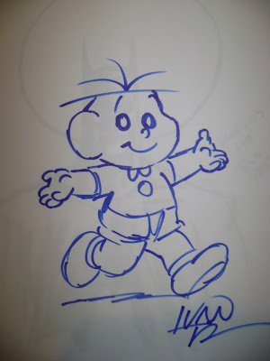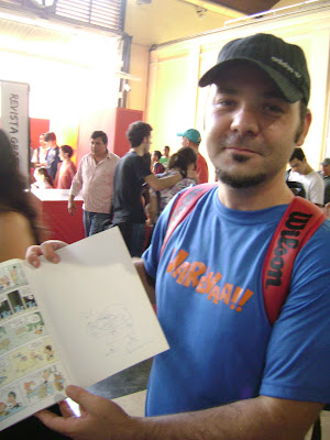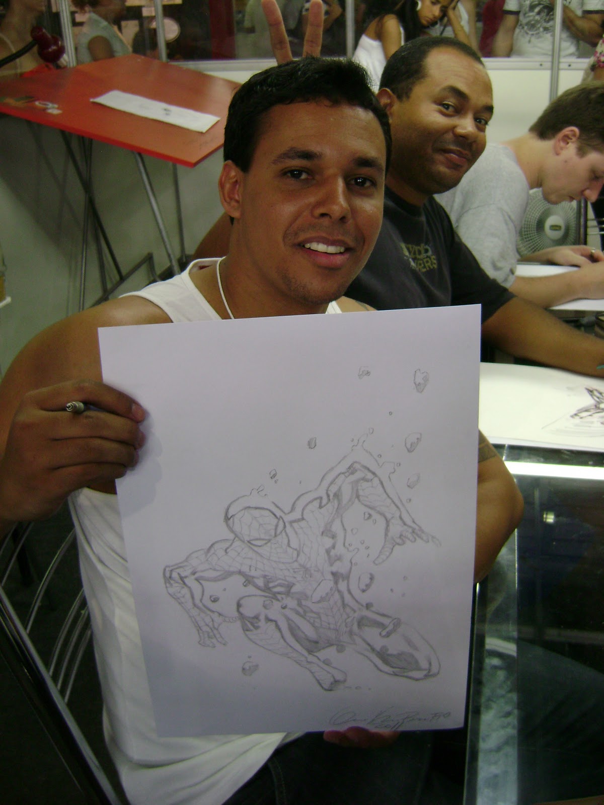 Sei lá, posso estar enganado, mas acho que Ivan Reis (Lanterna Verde e recentemente Aquaman/DC), um cara que desenha muito por sinal, ficou meio desconfiado de que eu não conhecia seu trabalho e foi meio indelicado durante o autógrafo, enquanto me presenteava com essa m… pérola de desenho! Tá certo que pedi pra ele desenhar qualquer coisa, mas também não precisa tirar a cara dos manu, certo? =)