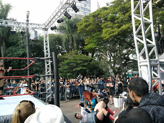 Mas olhando a programação, concluímos que nosso objetivo seria o palco de Stand-Up que estava rolando durante 24 horas com diversas apresentações e o palco de Luta-Livre! Sim! As lutinhas de mentira que faziam sucesso na TV Manchete na hora do almoço com Ted Boy Marino tinha um palco especial pra só eles se esmurrarem de brincadeirinha. E foi pra lá que nos dirigimos.