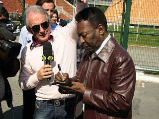 Os ídolos se mostraram extremamente acessíveis. Mauricio inclusive tomou café com os jornalistas enquanto aguardava o inicio da entrevista. Sempre simpático fez questão de atender todos os fãs, adultos e crianças. Pelé ficou menos tempo, mas ainda dei sorte de, na saída, ao entrar no estádio do Pacaembu (onde foi realizado o evento) dei de cara com o rei do futebol dando uma entrevista a Otávio Mesquita, na qual ele confessava o ciúme que tem da Monica. Afinal, ela viaja o mundo todo, e o Pelézinho não. ELE É O MUDAFUCKA PELÉ PO.