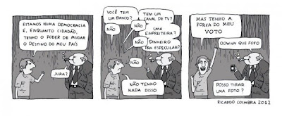 Em época de eleição, é comum falar em coisas como “votar consciente”, “não desperdiçar o voto” e diversos outros aspectos que remetem a uma tentativa de conscientizar a população acerca de seus direitos e deveres de cidadão. Afinal, todo brasileiro se orgulha e enche a boca para falar que vivemos numa sociedade democrática (geralmente só lembram disso quando é para que ele possa falar o que quiser, e não o contrário), onde todo mundo tem sua voz. Isso até pode ser verdade, mas dizer que o que temos é democracia é, simplesmente, uma mentira, independente do critério que usamos para analisar nossa sociedade.