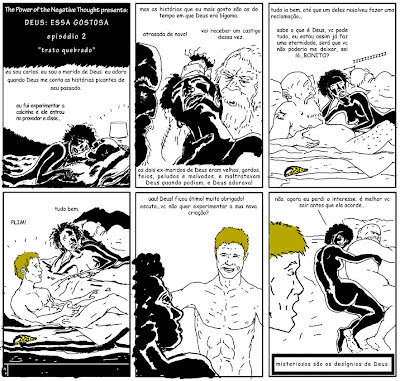 Deus, essa gostosa,é uma criação do artista plástico e quadrinista Rafael Campos Rocha. Inicialmente surgida numa lista de e-mails e distribuída apenas entre amigos, migrou para as páginas da Ilustríssima, suplemento cultural da Folha de S. Paulo. Desde então, ganhou tantos fãs quanto causou incômodo, provando que nem Deus – onisciente, onipotente e “frívola” – pode ser unânime. Confira algumas tiras: