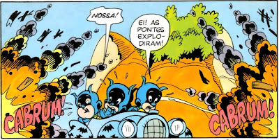 Naquela época ainda se tinha bem forte a imagem do Homem-Morcego do seriado dos anos 60, e vemos bem isso na revista com os bat-brinquedos mais nonsenses possíveis, ações heroicas das mais estranhas como salvar uma mosca na sopa, cuidar de crianças. Tudo com aquele humor até ingênuo e, para os dias de hoje, sem graça, mas que ainda me fez rir bastante.