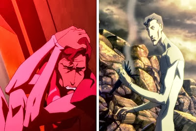 Pra falar a verdade à coisa mais legal dessa animação foi o fato de Kal-El não ter caído em uma fazenda e sim no meio de Metrópoles, destruindo parte da cidade, onde ao invés de ser capturado pelo governo e ser transformado em uma arma, na verdade ele foi criado em uma “jaula” sem nunca ter ter visto a luz do sol, o que dá a ele uma aparência esquelética, frágil, com uma personalidade assustada e de dar pena. Sério, me deu pena quando o Flash ao chama-lo de amigo o fez perguntar: Você me chamou de amigo?